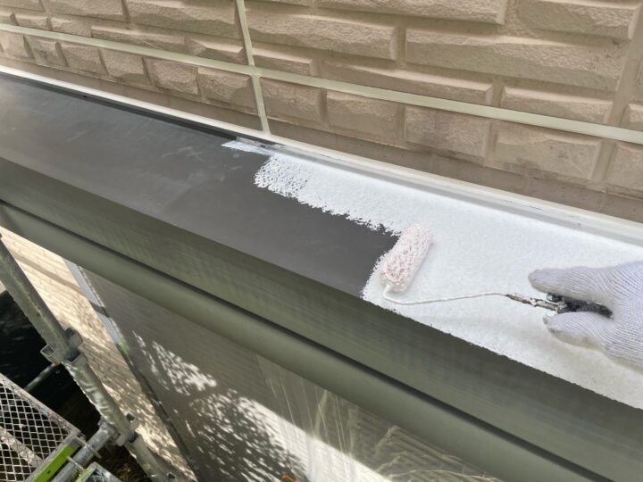 中塗り材を塗布する工程です。シャッターBOX/上塗り