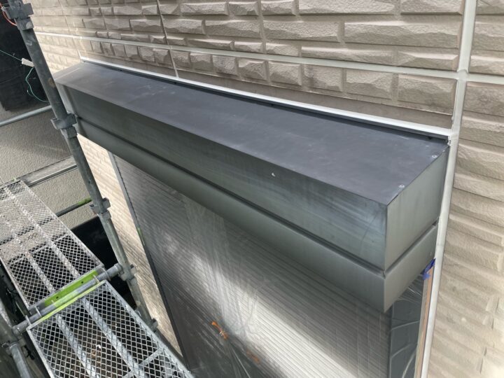 上塗り材を塗布する工程です。これで塗装の工程は完了です。シャッターBOX/施工前