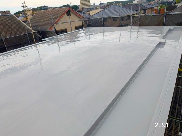 防水のトップコートを施工しています。防水/施工完了
