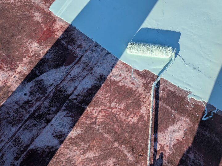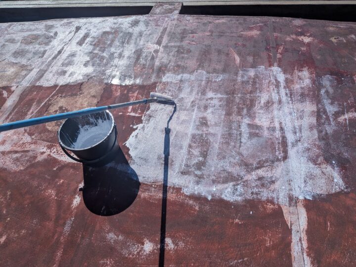 防水の2層目を施工しています。防水/トップコート