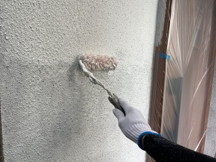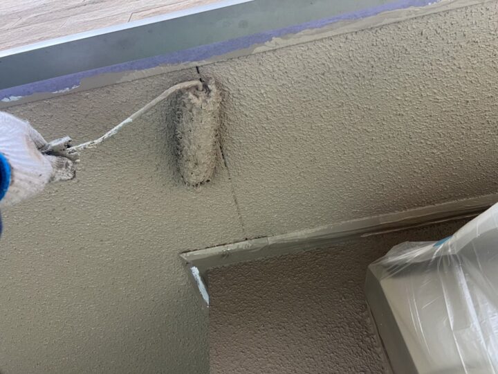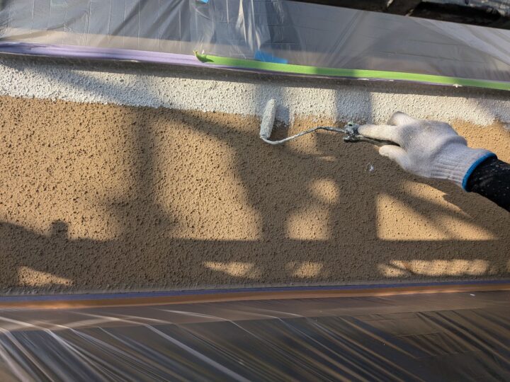 下塗り二層目を塗布する工程です。外壁/中塗り
