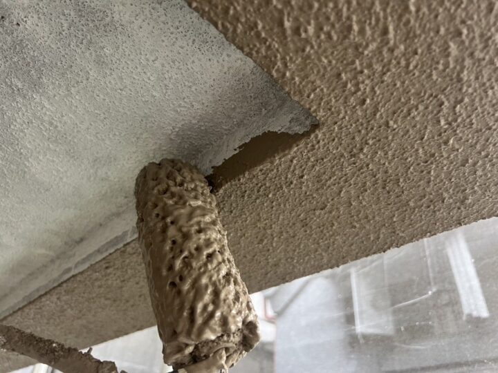 上塗り材を塗布する工程です。これで塗装の工程は完了です。軒天/施工前