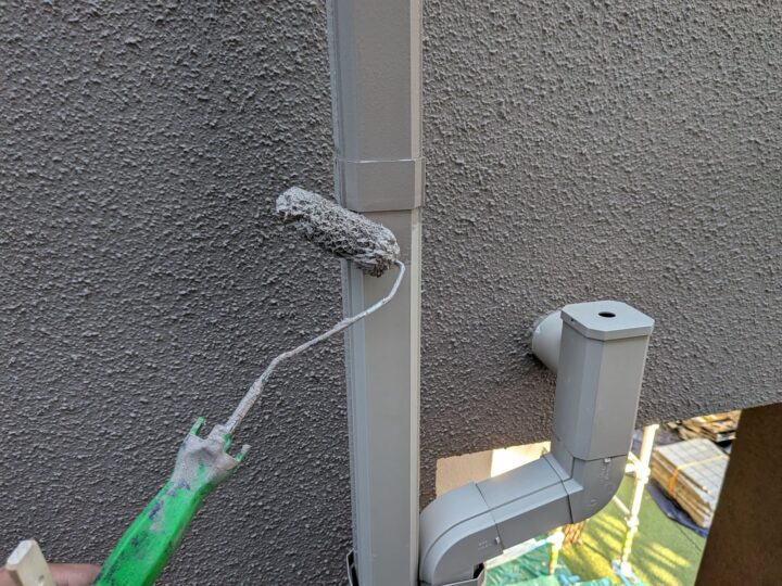 上塗り材を塗布する工程です。これで塗装の工程は完了です。竪樋/施工前