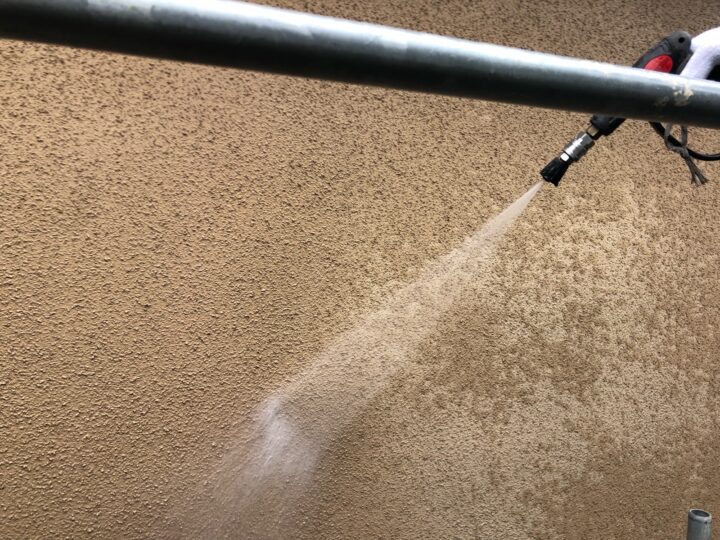 建物に付着した汚れや旧塗膜を落としました。外壁/下塗り