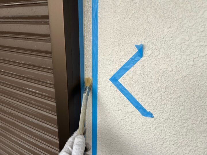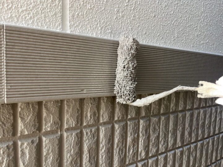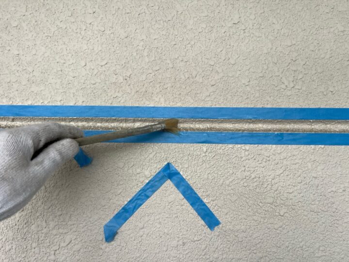 下地材とシーリング材の密着性を良くする為にプライマー施工をしています。シーリング/充填