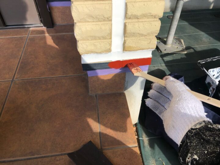 中塗り材を塗布する工程です。鼻隠し/上塗り