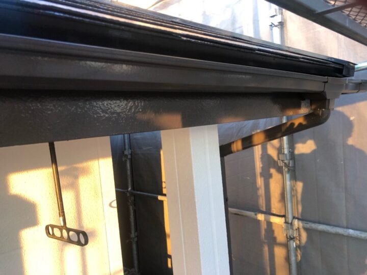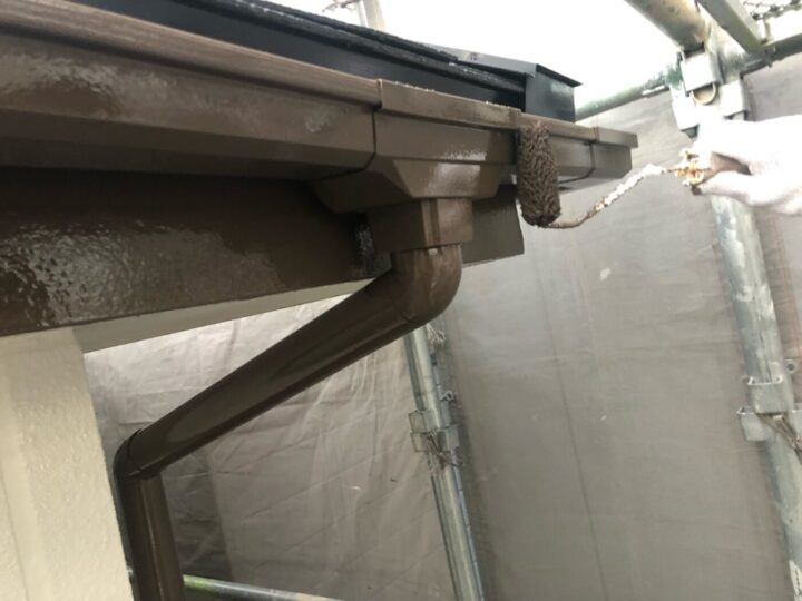上塗り材を塗布する工程です。これで塗装の工程は完了です。軒樋/施工完了
