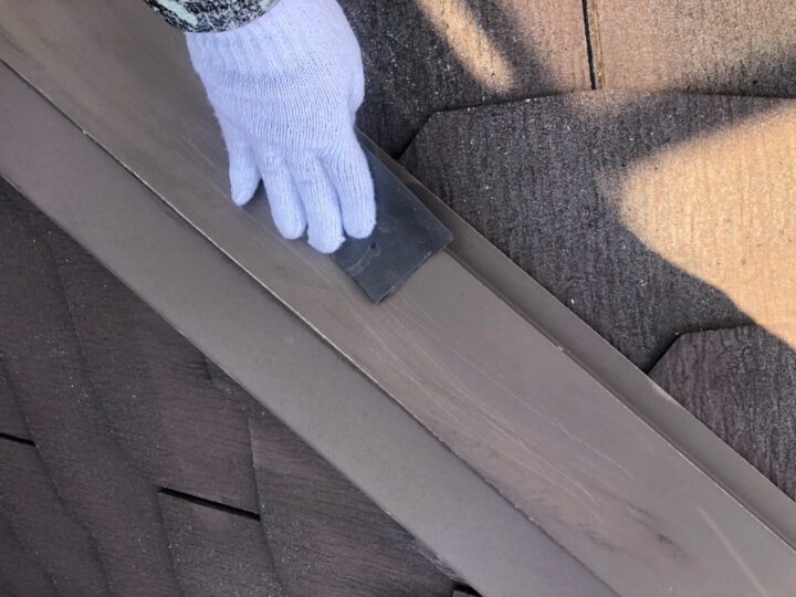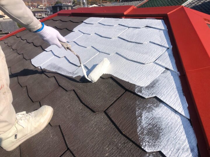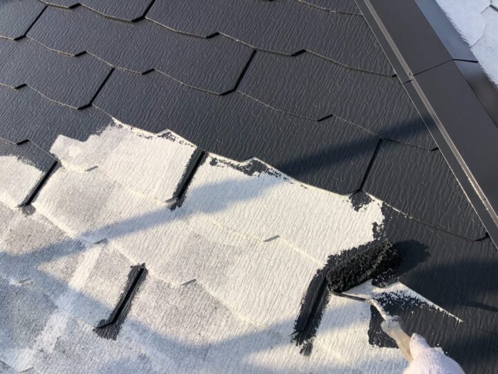 中塗り材を塗布する工程です。屋根/下地補修