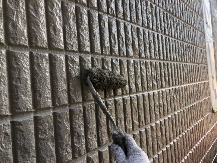 中塗り材を塗布する工程です。外壁/上塗り