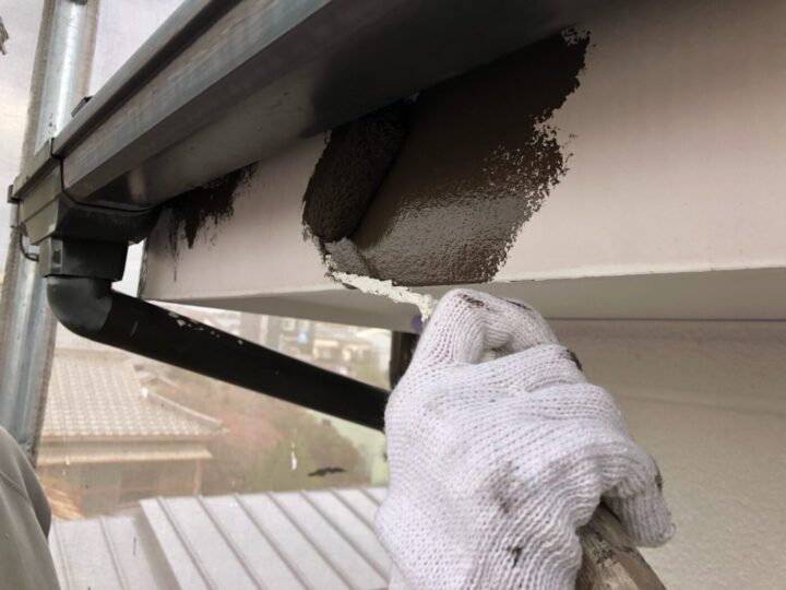 中塗り材を塗布する工程です。軒樋/上塗り