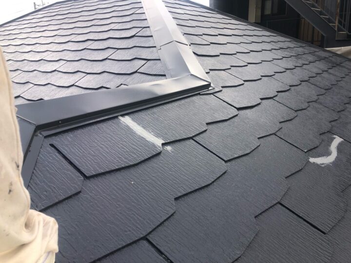 上塗り材を塗布する工程です。これで塗装の工程は完了です。屋根板金/施工完了
