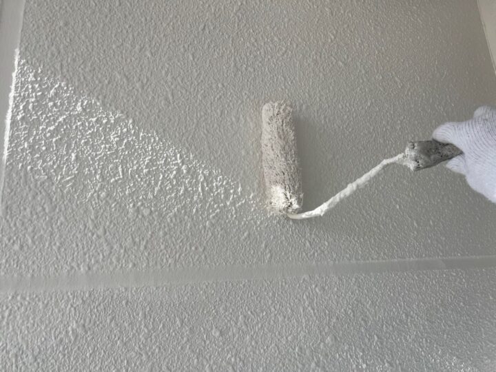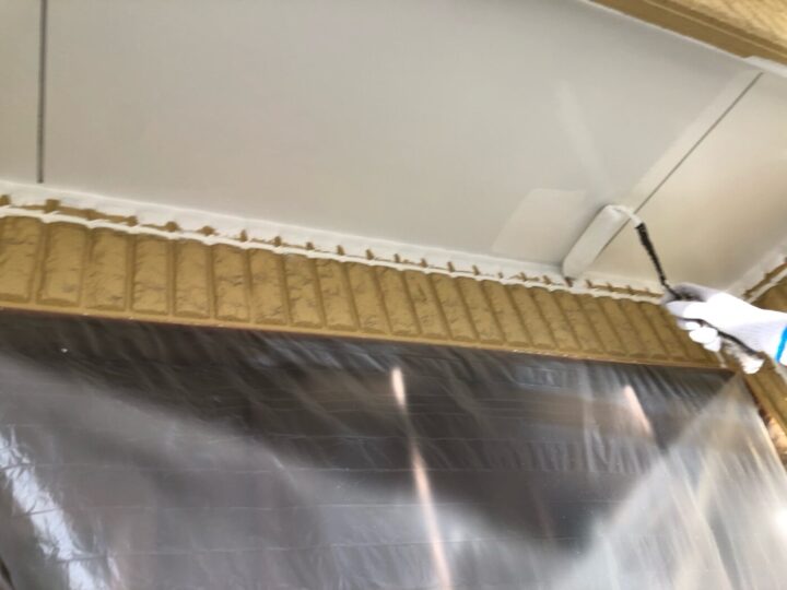 中塗り材を塗布する工程です。軒天/上塗り