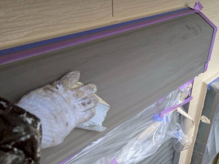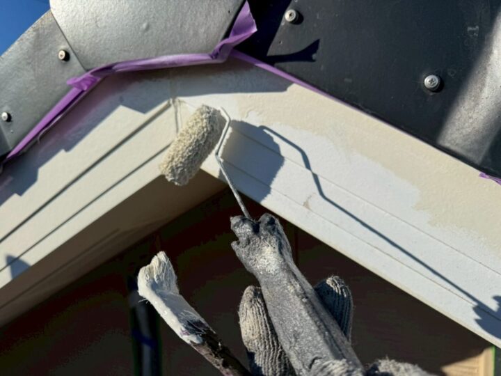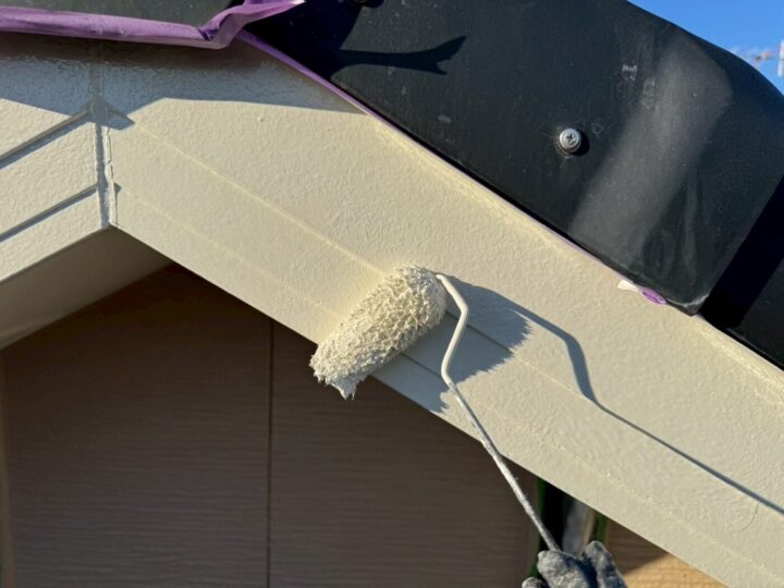 中塗り材を塗布する工程です。破風板/上塗り
