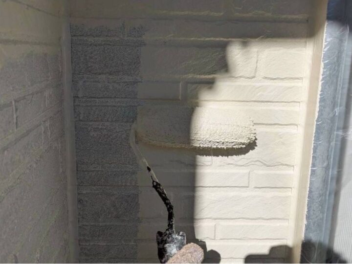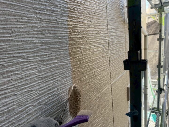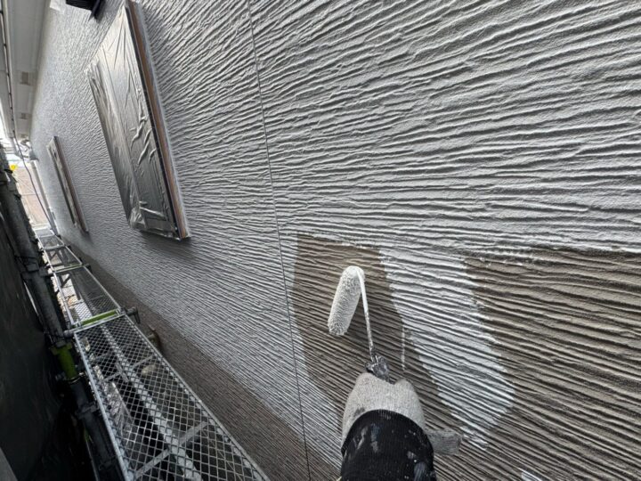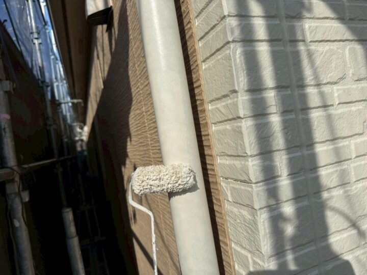 中塗り材を塗布する工程です。外壁/上塗り