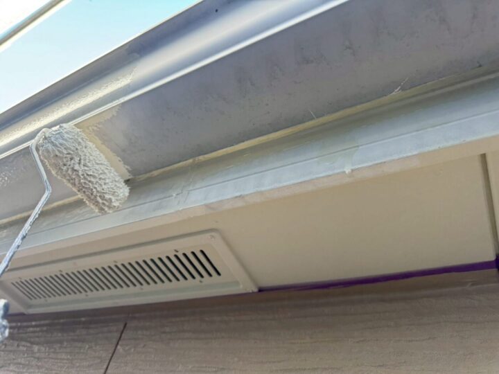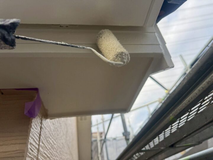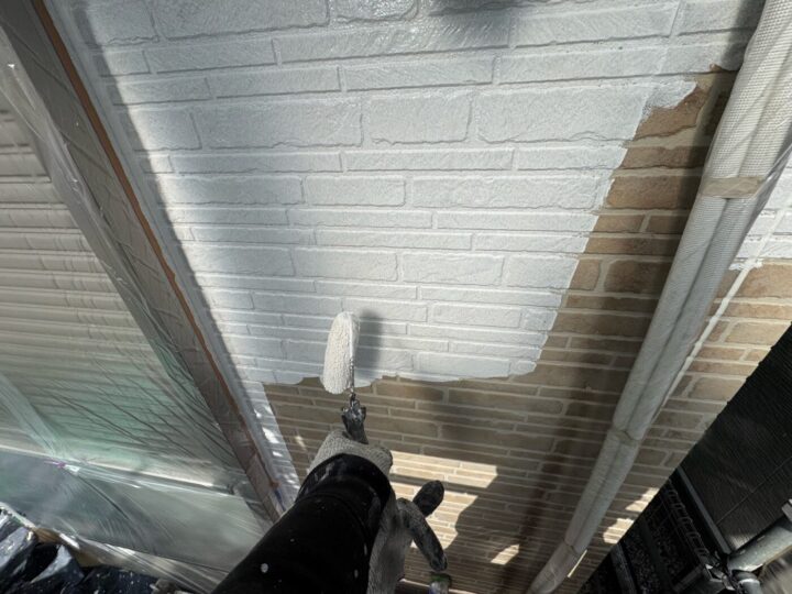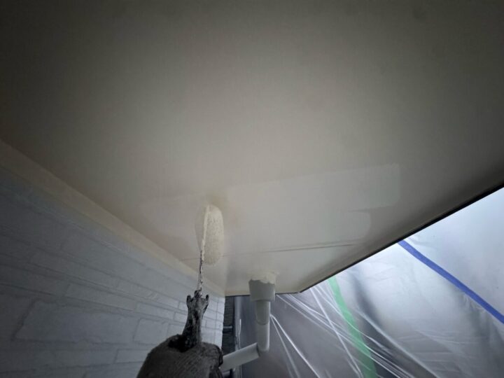 中塗り材を塗布する工程です。軒天/上塗り