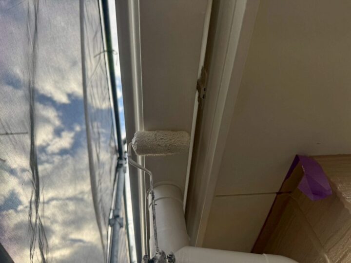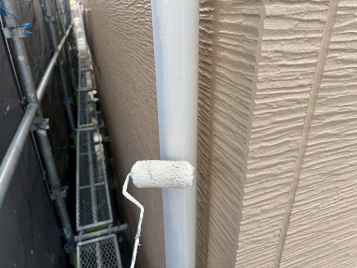 中塗り材を塗布する工程です。竪樋/上塗り
