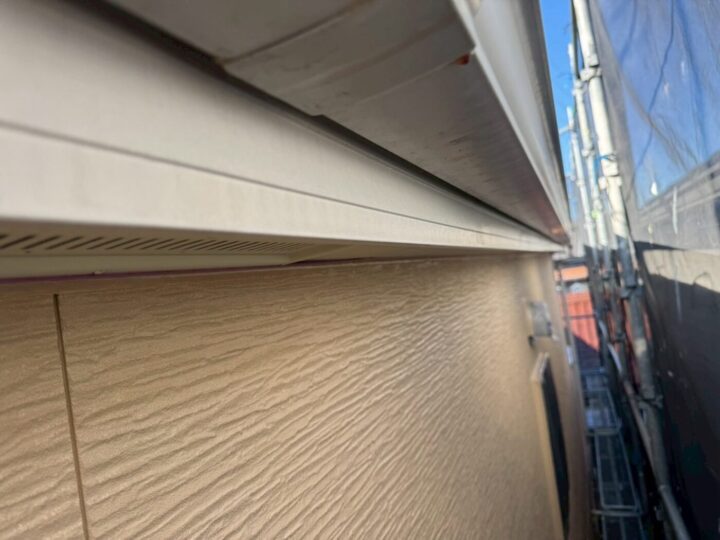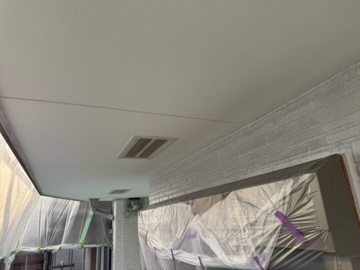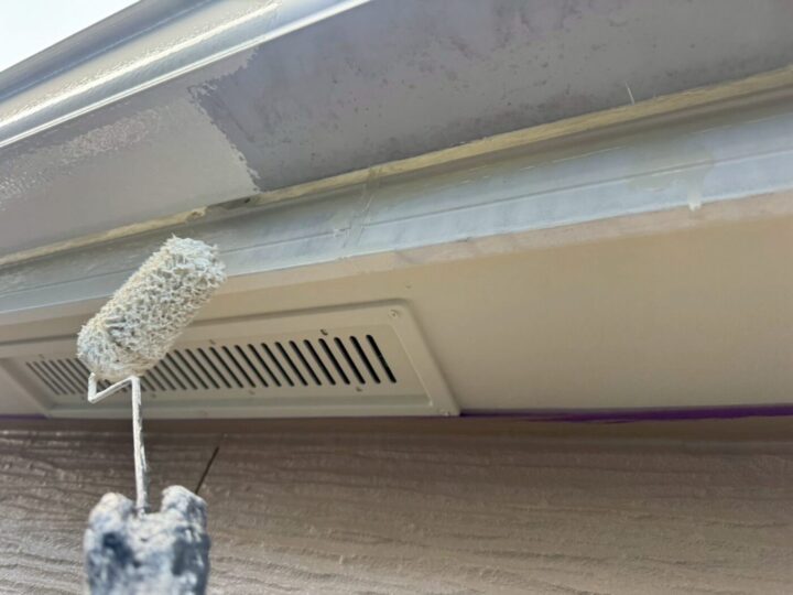 上塗り材を塗布する工程です。これで塗装の工程は完了です。軒天/施工前