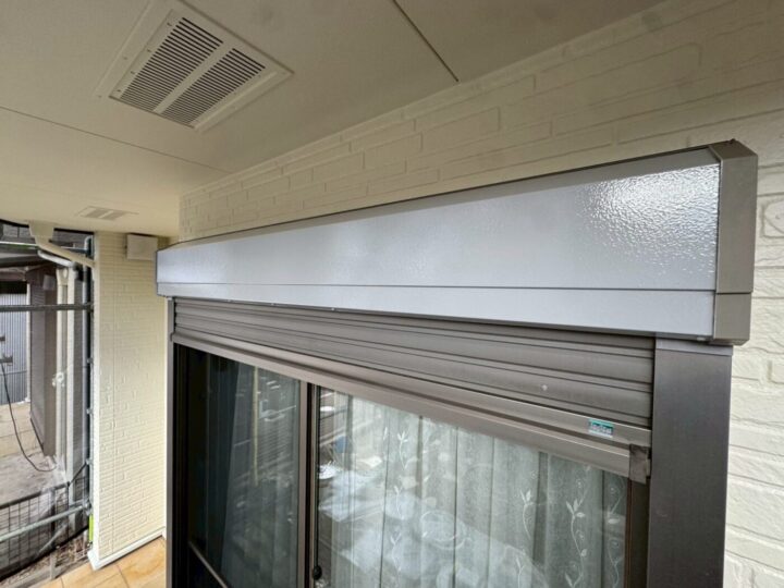 上塗り材を塗布する工程です。これで塗装の工程は完了です。シャッターボックス/施工前