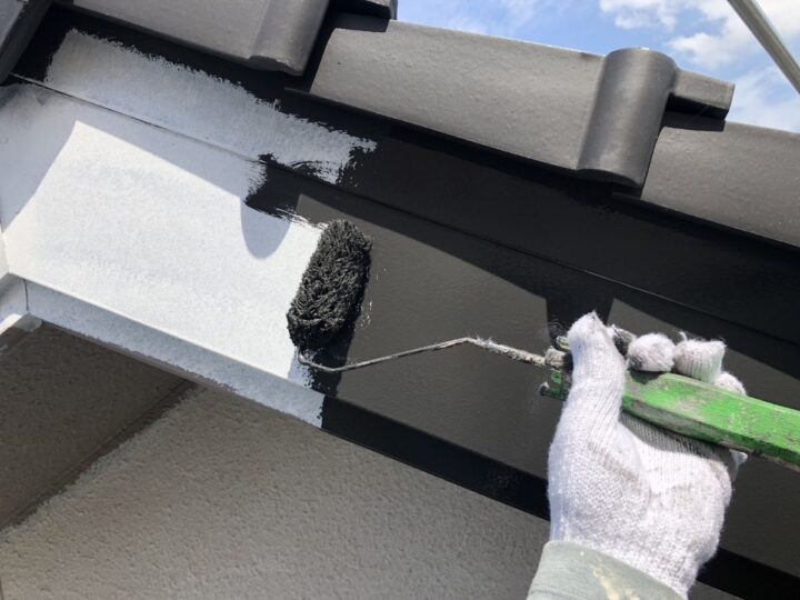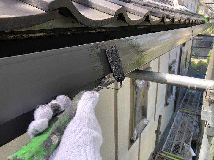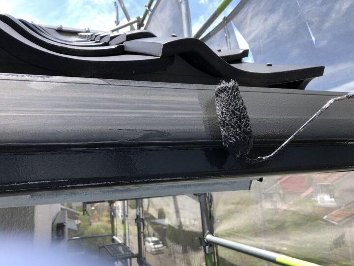 軒樋上塗り/上塗り材を塗布する工程です。これで塗装の工程は完了です。