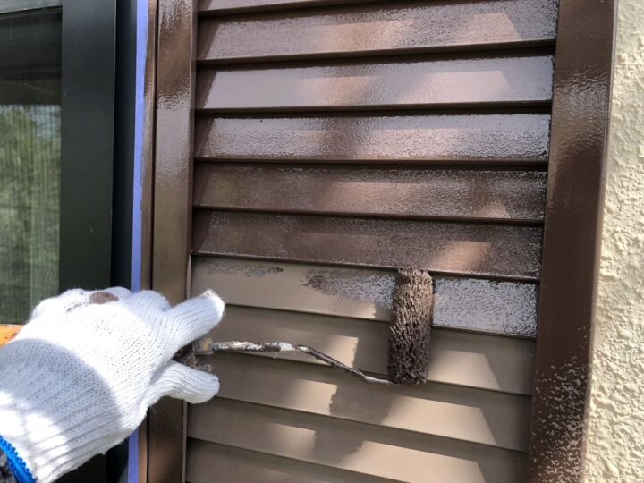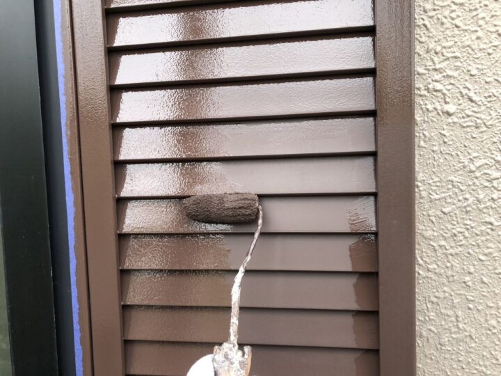 雨戸上塗り/上塗り材を塗布する工程です。これで塗装の工程は完了です。