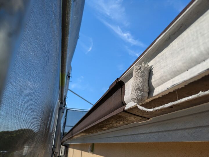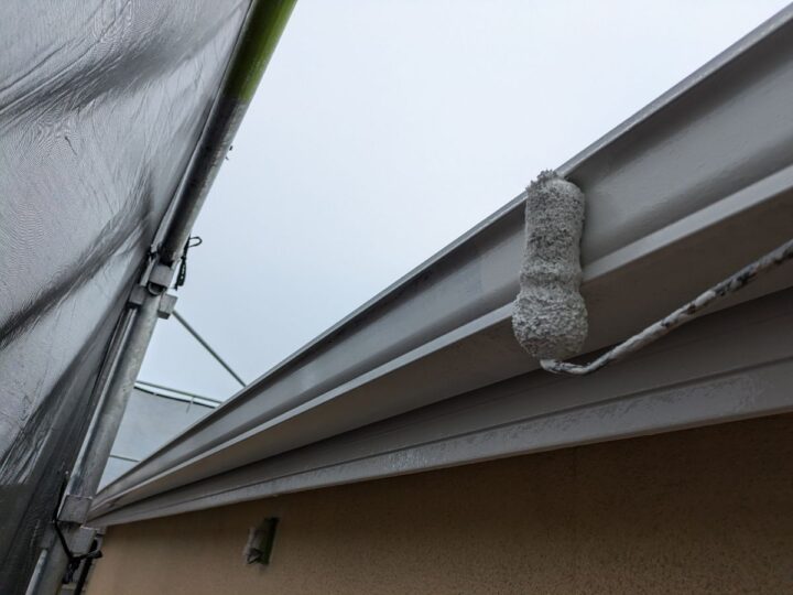 軒樋上塗り/上塗り材を塗布する工程です。これで塗装の工程は完了です。