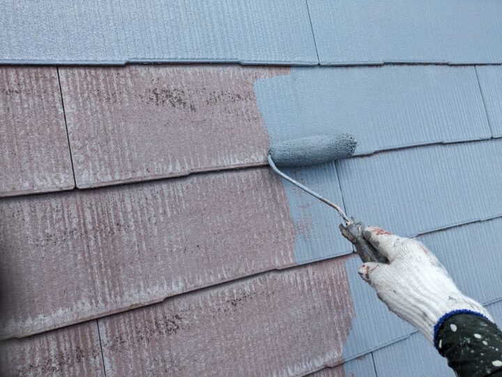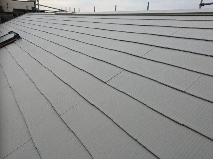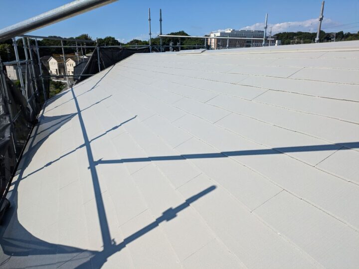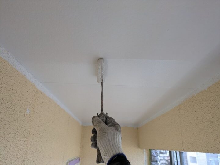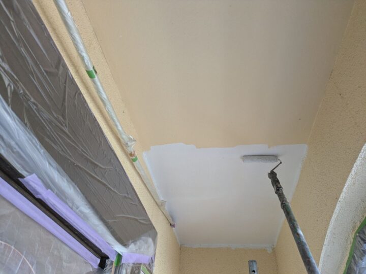 軒天上塗り/上塗り材を塗布する工程です。これで塗装の工程は完了です。