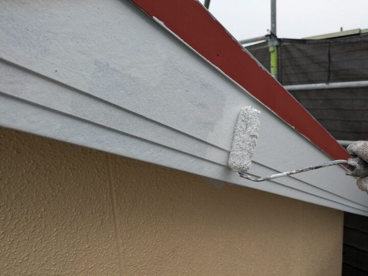 破風板中塗り/中塗り材を塗布する工程です。