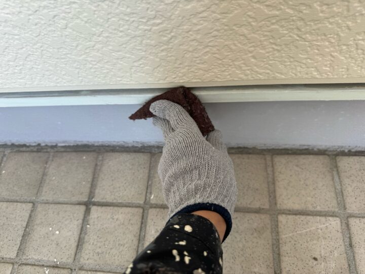ケレン/汚れ、サビ、旧塗膜等を落とし塗料の付着をよくするための作業を行いました。