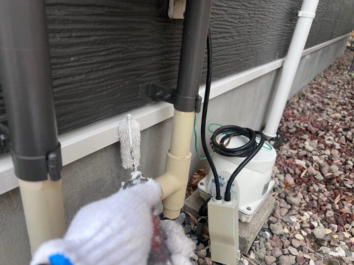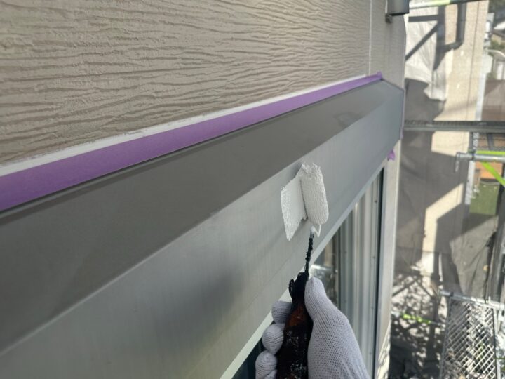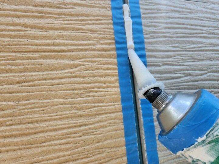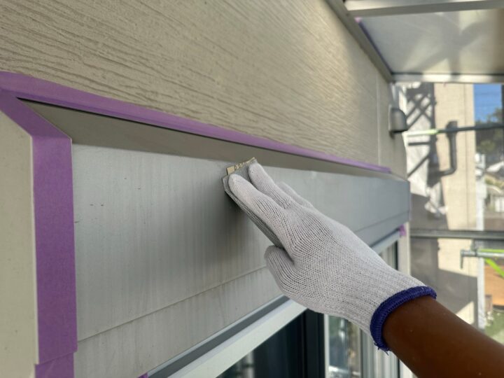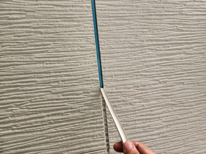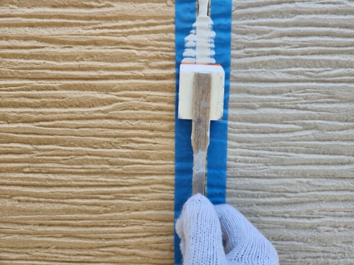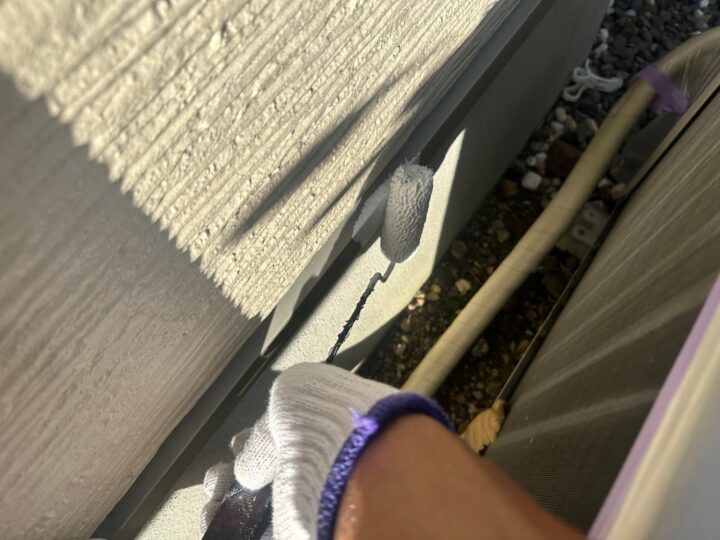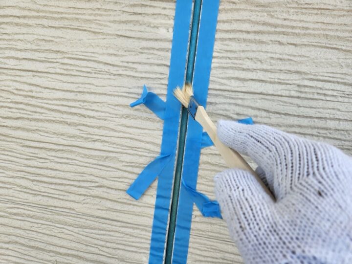 下地材とシーリング材の密着性を良くする為にプライマー施工をしています。