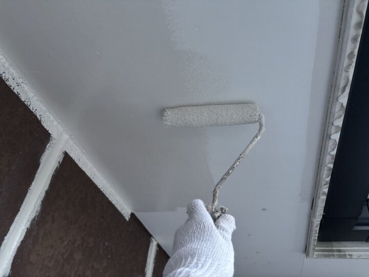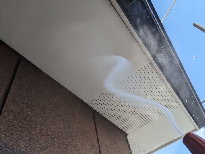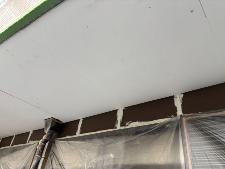 軒天のクールホワイトがとてもいいアクセントとなっています。