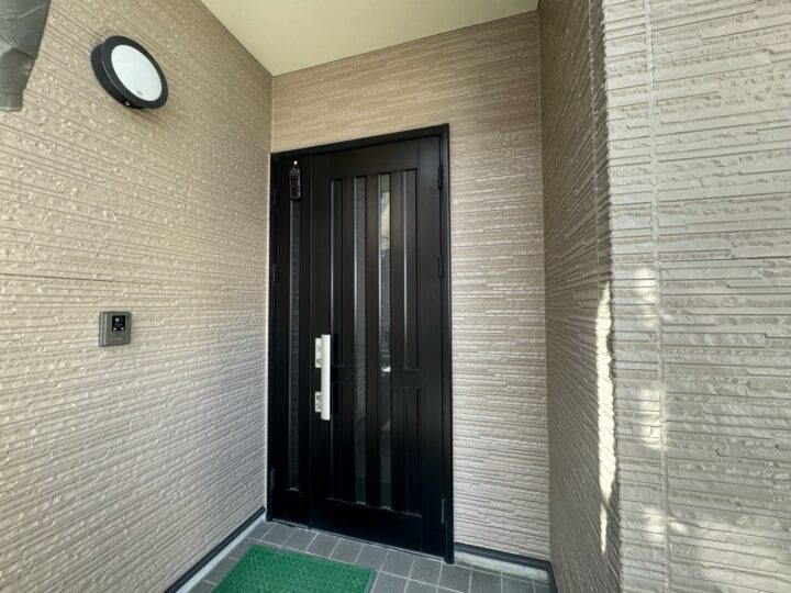 外壁に使用されているベイジュは落ち着きがあり、どんな色にも合わせやすいお色となっております(*^_^*)