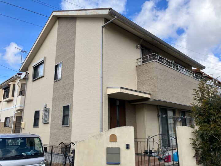| 外壁使用塗料 | 外壁メイン:関西ペイント/ダイナミックトップ/スムースクリーム 外壁アクセント:関西ペイント/ダイナミックトップ/コーヒーブラウン |