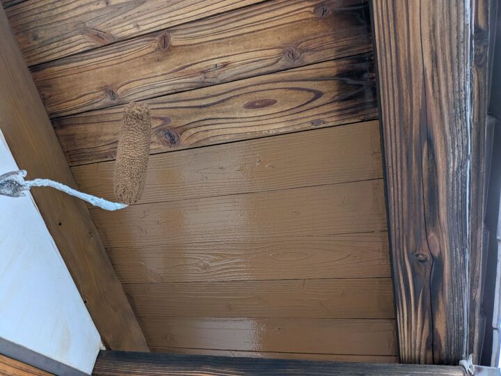 カスタニは、赤みのある濃いブラウン系カラーで、木部の温もりや重厚感を引き立てる塗装色です。